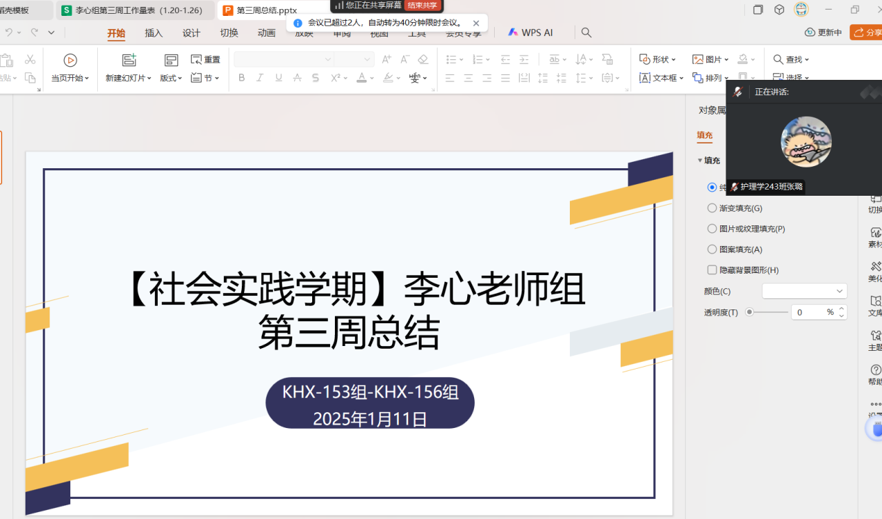 为了更好地推进社会实践学期的各项活动,确保每位学生都能在实践活动中获得收获,2025年1月25日,生涯导师李心于腾讯会议召开了第三周总结会议。本次会议由生涯导师李心主持,KHX-153至KHX-156组的全体成员参加。