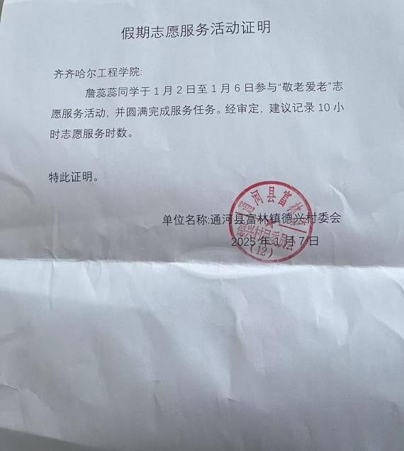 近日,社会实践学期的各项目有序进行中,我在1月2日至1月6日进行了敬老志愿服务活动,为老年人群的健康生活增添了温暖与保障。