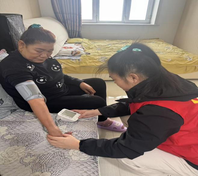 我作为护理专业的志愿者在老人家中,我轻扶老人坐下,动作轻柔地为他们量血压,一边操作,一边耐心地用通俗易懂的语言科普血压的相关知识。当发现老人血压异常时,我结合他的生活习惯,给出调整作息、清淡饮食的建议。测量完血压后,老人眼眶湿润,紧紧拉着我的手,连声道谢。
