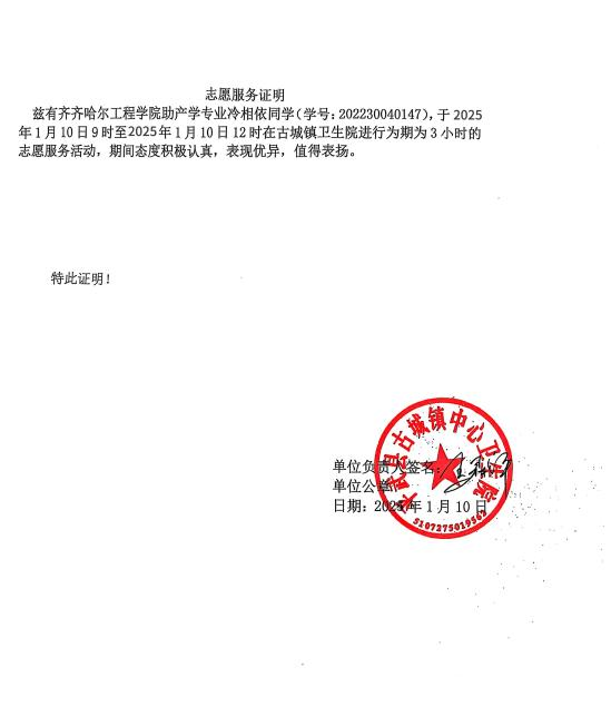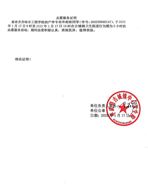 志愿是一种精神,服务是一种理念,本着这样的精神和理念。为积极响应学校“三五能力”,本人分别在1月10日、1月17日早上在古城镇卫生院为中老年人开展免费血糖、血压测量活动,以实际行动传递关爱,助力社区居民健康生活。加入志愿服务的行列,进行为期8小时的志愿服务,在自己的岗位上兢兢业业,勤勤恳恳,努力做好组织和领导给我分配的各项任务,获得了不少患者与领导的喜欢和表扬。