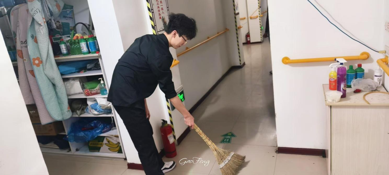在公寓工作人员的带领下,高峰同学来到了老人们的房间,为老人洗脚。随后,他又帮助老人打扫卫生,确保房间干净整洁,同时,还向老人宣传卫生知识,提醒老人注意个人卫生和饮食健康。最后,高峰同学利用所学的推拿技巧和方法,为老人们提供专业的服务。