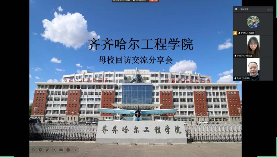 为了感谢母校教育之恩,齐齐哈尔工程学院康护工程系KHX-124组孙溪源于2025年1月10日在线上举行母校回访活动的心得分享,借此机会通过腾讯会议的方式向母校的老师开展了“母校回访”活动。与老师分享了我的大学生活。