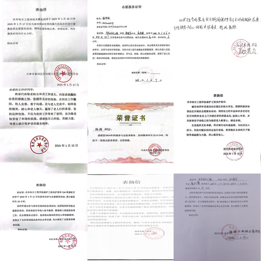 一封封表扬信,字里行间饱含着对护理学专业学子们的肯定和赞扬。同学们用实际行动诠释了“奉献、友爱、互助、进步”的志愿服务精神,展现了新时代大学生的责任与担当。他们用专业知识服务社会,用爱心温暖他人,在志愿服务中收获了成长,也为社会贡献了自己的青春力量。相信在未来的学习和工作中,他们将继续发扬志愿服务精神,为护理事业的发展和社会的进步贡献自己的力量。