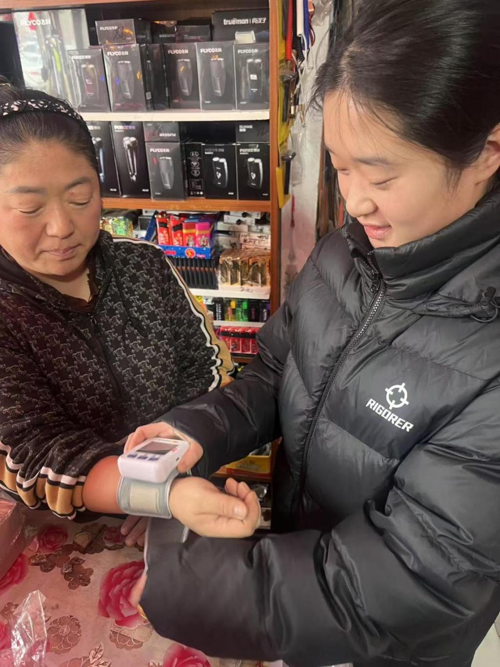 活动现场,我们身穿整齐的服装,带着专业的电子血压计,在专业指导下,有条不紊地为商铺工作人员测量血压。大家手法娴熟,神情专注,每一次测量都力求精准。测完血压,我们还充分发挥专业优势,开启健康知识科普小课堂,特别是高血压的预防、日常饮食注意事项这些内容,讲解得十分细致。