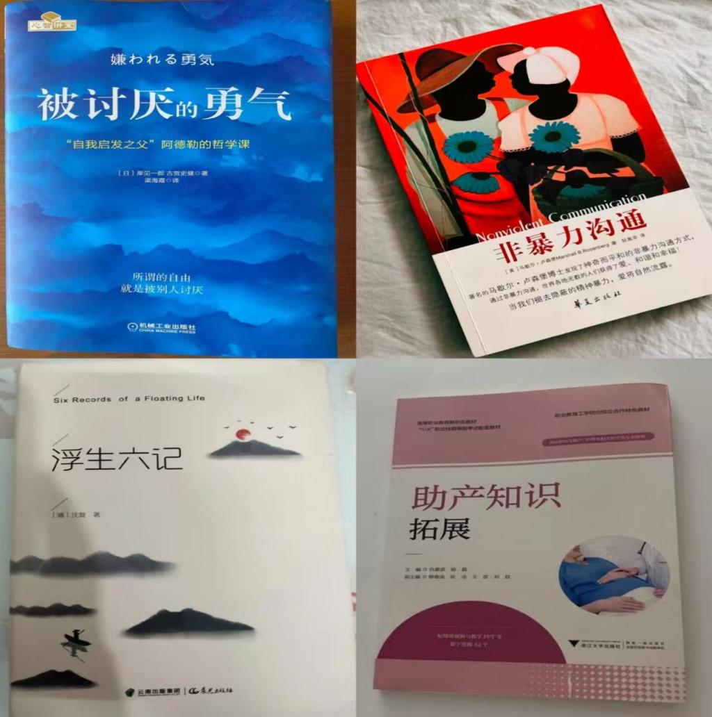 会议开始,首先由组长庞国悦分享了《助产拓展知识》,书中为我们提供了丰富的临床知识和实践技能,帮助我们更好地理解助产工作的复杂性和重要性。此外,书中还提供了“知识库”和“思考与练习”部分,拓宽了我们的知识面并巩固了学习内容。随后,管艾暄同学分享了《浮生六记》,这篇散文它让我们明白,生活不必追求奢华,简单而真实的日子才是宝贵的。同时,它也告诉我们,无论生活如何变迁,都要保持对生活的热爱和对美好的追求。杨月娟同学分享了《非暴力沟通》并生动地讲述了其中的内容,最后孙雪颖同学分享了《被讨厌的勇气》并讲述了她所学到的道理。