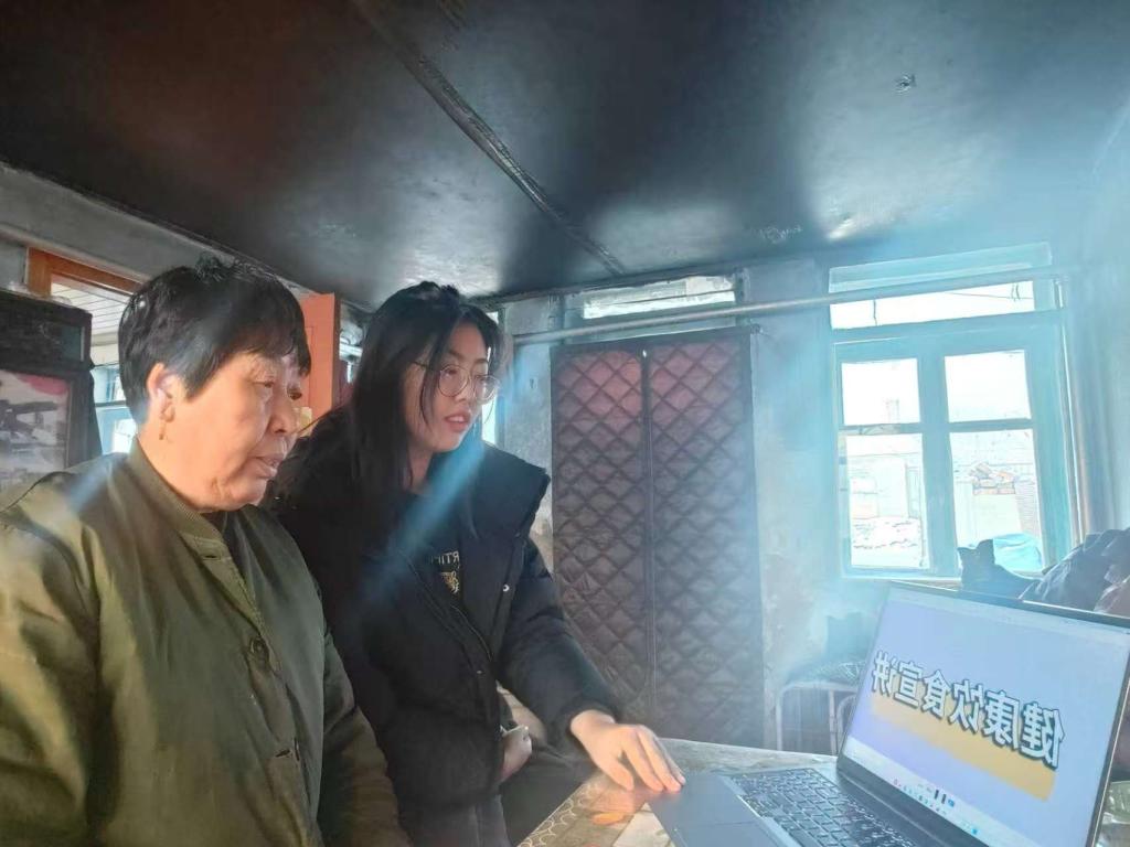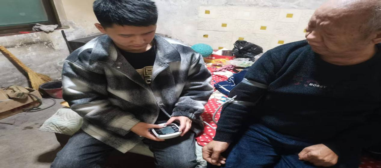 在山西省,郭昊翔早早布置好场地,摆放好血压测量设备。测量过程中,他专注操作仪器,认真记录下每一个数据,遇到听力不太好的老人,他便凑近老人耳边,耐心重复讲解。