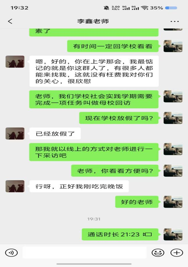 黄缨淼同学向老师表达了真挚的感激之情,感谢老师在高中阶段的悉心教导与关怀。在交流中,黄缨淼同学分享了自己在齐齐哈尔工程学院的学习生活,讲述了丰富多彩的校园活动、专业课程的学习心得,以及面对挑战时的坚持与努力。老师则结合自己多年的教学经验,为黄缨淼同学未来的学业规划和职业发展提出了宝贵建议,鼓励她在大学中继续保持积极进取的态度,不断提升自己。