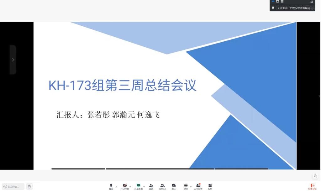 在2025年社会实践学期第三周的实践活动中,KHX-173组的成员们积极参与各项实践任务,展现了高度的责任感和团队合作精神。为了总结本周的实践成果,分享经验,并为接下来的社会实践做好准备,小组于2025年1月24日在腾讯会议召开了第三周总结线上会议。