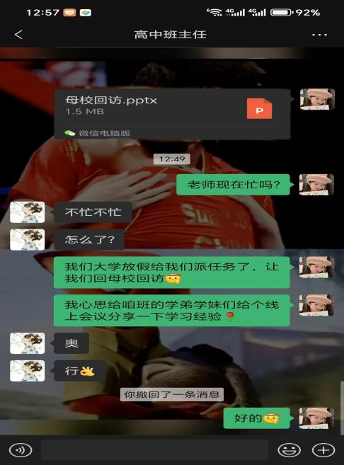 本次回访是向母校师生分享大学生活与学习经验,激发学弟学妹们的学习动力和对大学生活的向往。