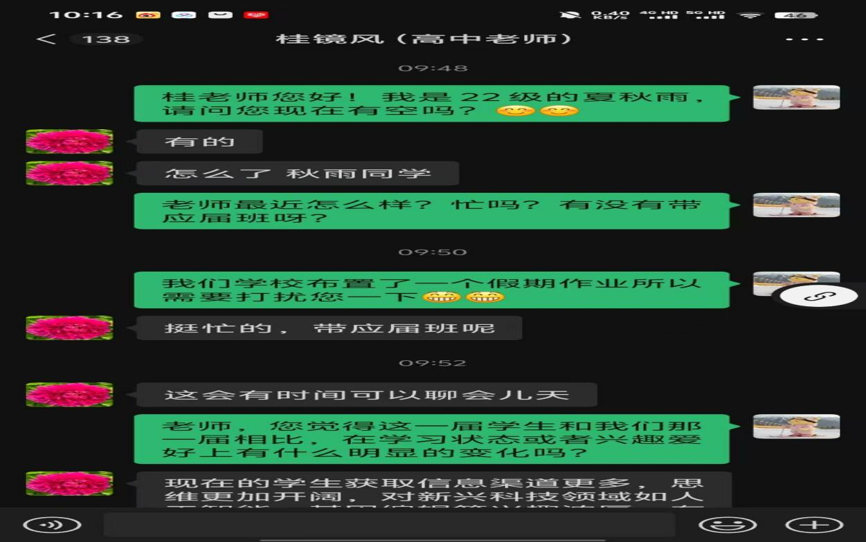 随后,为学弟学妹们带来了一场干货满满的分享会。他们结合自身的高考备考经验,从学习方法、时间管理、心态调整等多个角度进行了深入剖析。在专业选择和大学生活介绍环节,回访团队通过展示丰富多彩的校园活动、分享个人成长故事,让学弟学妹们对大学生活有了更直观的认识,激发了他们的学习热情和对未来的憧憬。此外,回访团队还精心准备了问答互动环节,耐心解答学弟学妹们在学习和生活中遇到的困惑,现场气氛热烈。