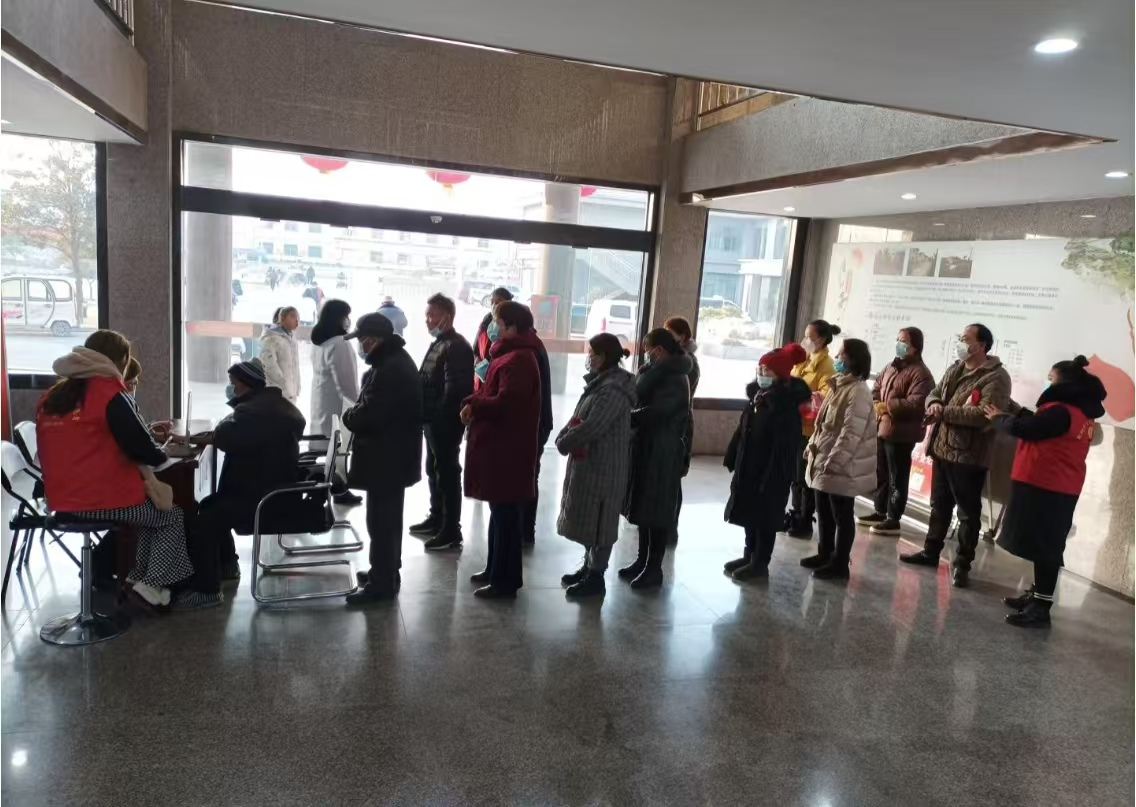 一群老年人在社区卫生院内排队等待服务。他们穿着厚重的冬衣,戴着口罩,显得有些疲惫和无助。工作人员和我正在为他们提供帮助,进行健康检查和咨询。这些服务虽然能够提供一定的帮助,但无法完全替代子女的陪伴和关怀。