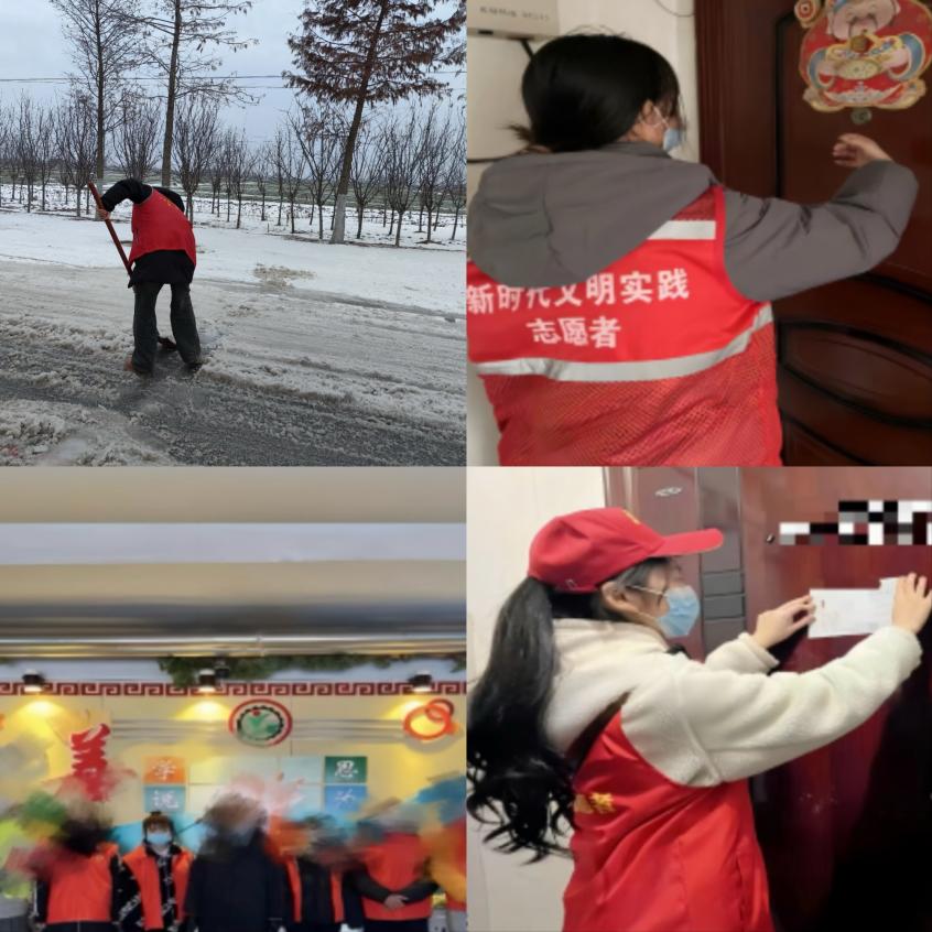 KHX-136组由组长关雪彤和组员卢月琴、郭婉容、孟思彤组成,由于各组员家之间距离较远,不方便共同进行志愿服务,组长提议在各自家附近居委会进行。并通过腾讯会议进行总结分享交流。关雪彤在清理街道上的积雪;孟思彤在社区进行上门慰问;卢月琴去当地卫生院对老年人进行上门血压测量;郭婉容去附近幼儿园进行寒假大扫除。在会议上,大家分享了心得,卢月琴说:走进老爷爷老奶奶的家发现他们屋子虽然陈旧却光洁如新,爬了很多楼梯但乐在其中。