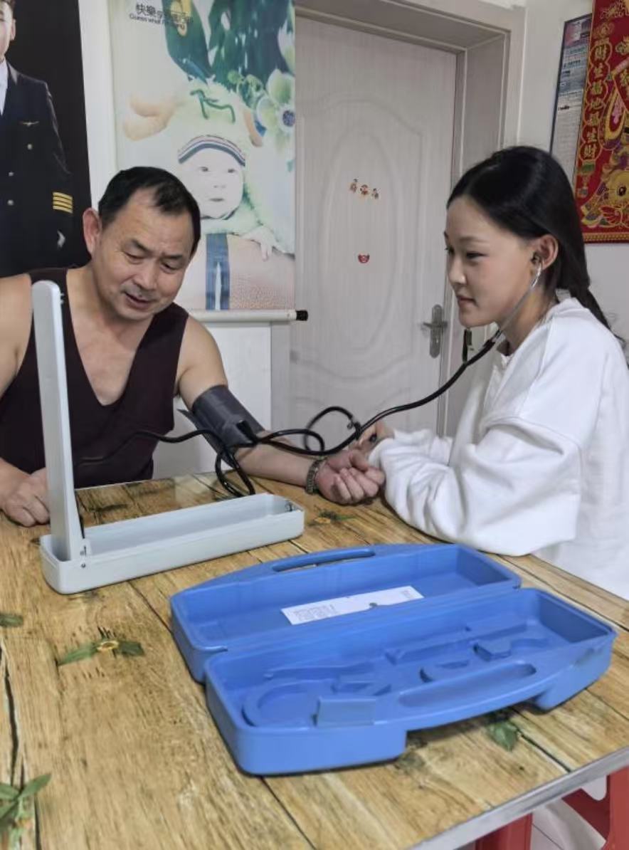 在活动中,姜雨婷在村委会工作人员的带领下,逐一走进留守老人的家中。每到一户,姜雨婷都亲切地与老人拉家常,详细询问他们的生活状况和身体情况,耐心倾听老人们的心声。同时,姜雨婷还利用专业的医疗设备,认真为老人们测量体温和血压,仔细记录数数据。