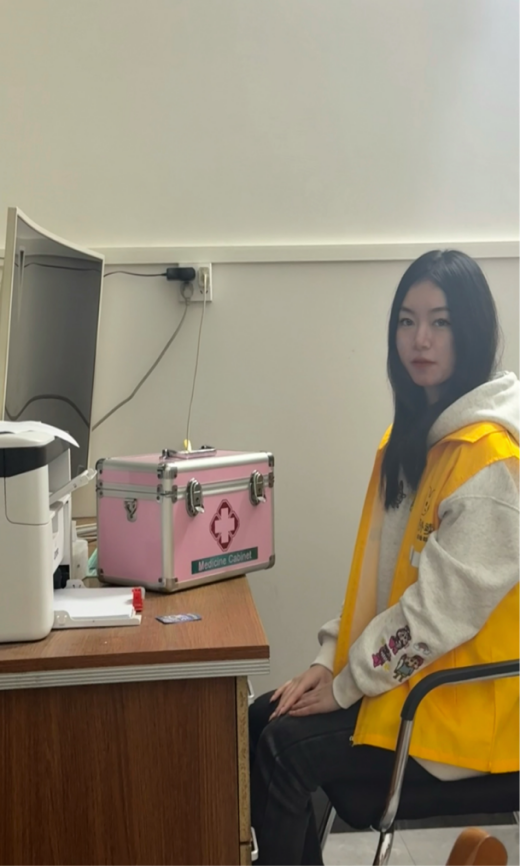 这次的志愿服务我来到了本地的美团外卖配送站点,作为站点的应急医护人员,我的主要工作是在骑手配送期间遇到小型交通事故发生受伤情况时帮助他们处理伤口,上药,包扎。除了这些医疗行为外,我还负责他们在每日送餐之前的餐箱消毒,保证每一位顾客的食品健康。经过上一次疫情后,骑手上班之前站长都会强调骑手对自身配送设备的消毒工作,在志愿服务期间,我就负责了给每一位骑手送餐的餐箱消毒的工作。