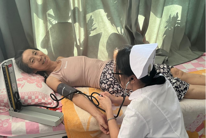 在寒假期间,护理学(专升本三年制)的刘鑫积极投身社区志愿服务,用专业知识为社区老年人送去温暖与关怀。