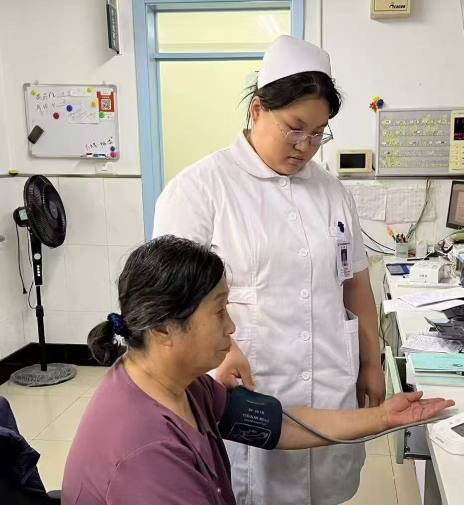 2月20日,宋雨桐同学在医院做志愿服务时,负责为老人测血压。起初,面对陌生的仪器和老人,我紧张又生涩。当我第一次为一位爷爷绑好袖带,按下测量键,眼睛紧紧盯着数值变化,心里满是忐忑。测量结束,我把结果告知爷爷,他笑着向我道谢,那一刻,紧张感瞬间消散,取而代之的是满满的成就感。这次经历,让我真切感受到护理工作的意义。每一次精准测量,都是对老人健康的守护。也让我明白,要成为一名合格的护理人员,不仅要有扎实的专业知识,更要有耐心和爱心。