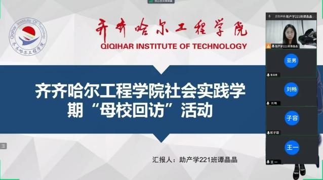 谭晶晶回到了抚远市第一中学,由于老师出差所以进行线上回访,我结合自身经历,讲述了如何在高中阶段合理规划时间、高效学习,以及如何调整心态应对高考压力。同时,还介绍了丰富多彩的大学生活,展示了齐齐哈尔工程学院的校园风光、学科特色、社团活动等,让学弟学妹们对大学生活充满了向往。