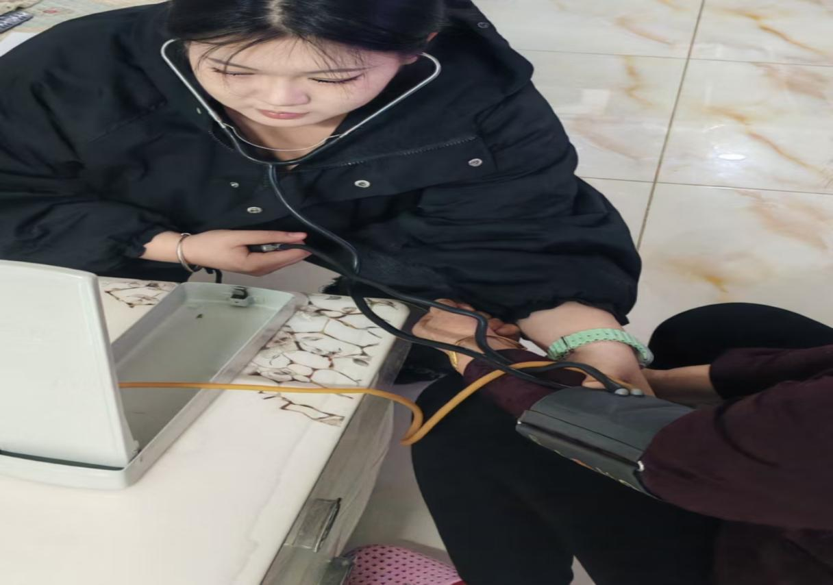 HLX-095组的杨冬雪同学于2025年2月19日-2025年2月21日在社区进行了志愿者活动,向老人普及测量血压的方法,普及相关知识并进行健康指导。