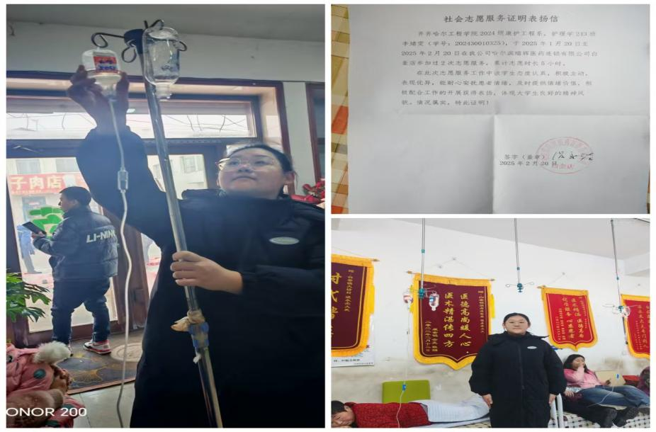 为切实履行我校专业实践学期志愿活动,康护工程系KHX-132组李婧雯于2025年2月20日开展志愿服务活动,主要负责看顾药液、照顾患者。在医护人员的指导下,开始细致的工作。当护士为患者调配好药液后,我会仔细核对信息,确认无误再端到患者面前。给患者看顾药液时,我会时刻留意药液的滴注速度和患者的反应,轻声告知患者一些注意事项。照顾患者同样充满挑战。一些患者会因身体不适而情绪烦躁,我会耐心倾听他们的烦恼,用温暖的话语安抚他们。对于行动不便的患者,我会主动帮忙拿东西、搀扶移动。
