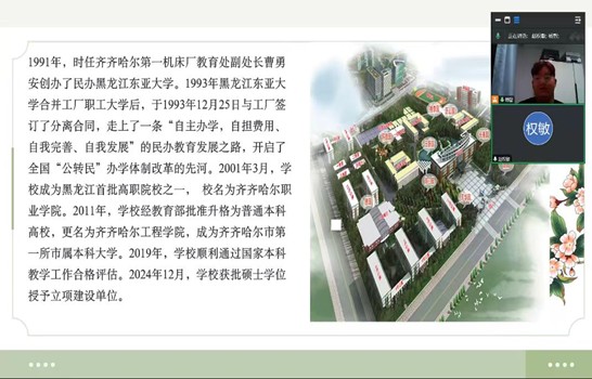 活动以精心准备的PPT展示拉开帷幕。在屏幕这端,杨智同学详细介绍了齐齐哈尔工程学院的校园布局、特色专业和前沿的科研成果。精美的校园风景图和丰富的学术活动照片,让老师、学弟学妹们直观感受到大学的独特魅力。