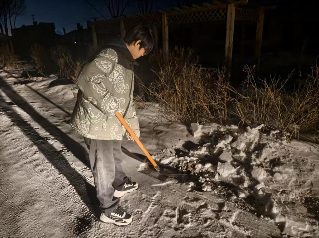 返程途中,天降大雪,道路积雪严重,给居民出行带来极大不便。杨大为没有丝毫犹豫,回家取来清雪工具,来到路边与其他志愿者一起投身清雪工作。经过几个小时的努力,原本积雪覆盖的道路逐渐恢复畅通,居民们出行更加安全,杨大为和志愿者们的付出得到了社区居民的一致称赞。