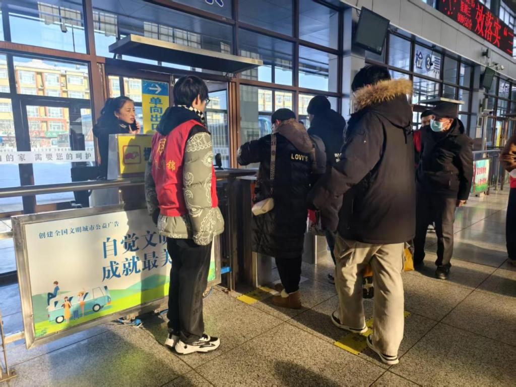在假期返乡期间,杨大为了解到客运站春运期间客流量大,工作人员人手紧张。他主动前往客运站,协助工作人员维持秩序。在售票大厅,他耐心解答乘客们的各种问题,帮助不熟悉线上购票流程的旅客购票,还帮忙指引旅客前往候车区,确保大家顺利乘车。