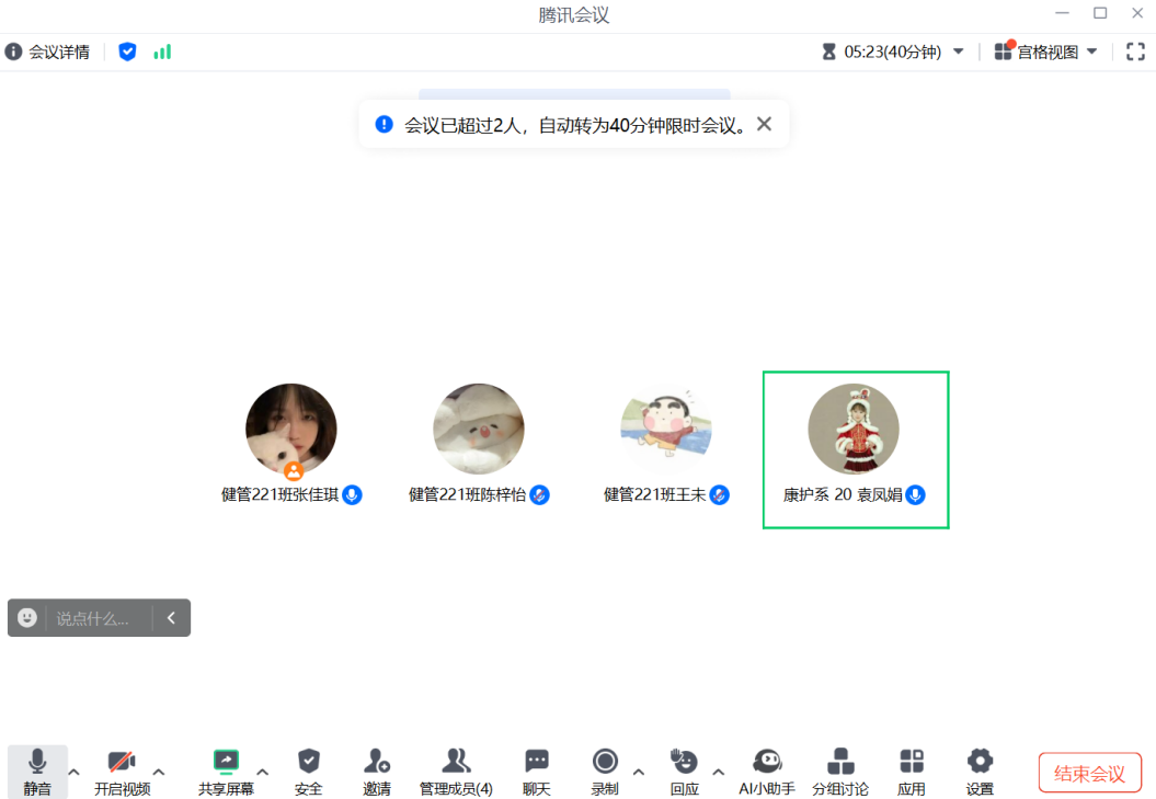 社会实践是指学生利用假期时间前往社会,参与社会活动,亲身感受社会实践的一种教育活动。通过亲身体验,更加深入地了解社会,体会社会文化、认识社会问题、实现自我价值。在社会实践学期即将进入尾声时,康护工程系健管221班陈梓怡、王未、张佳琪和其生涯老师袁凤娟于2025年2月22日进行了总结汇报,总结其社会实践学期所完成的内容以及进度情况。
