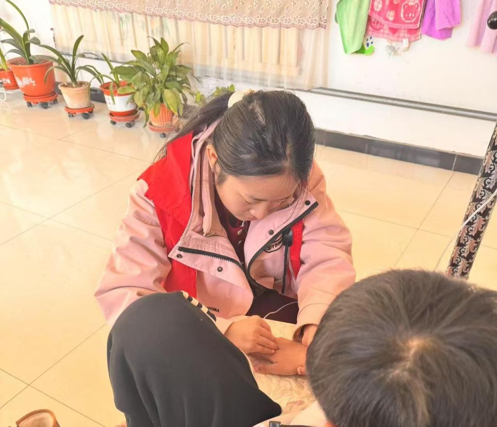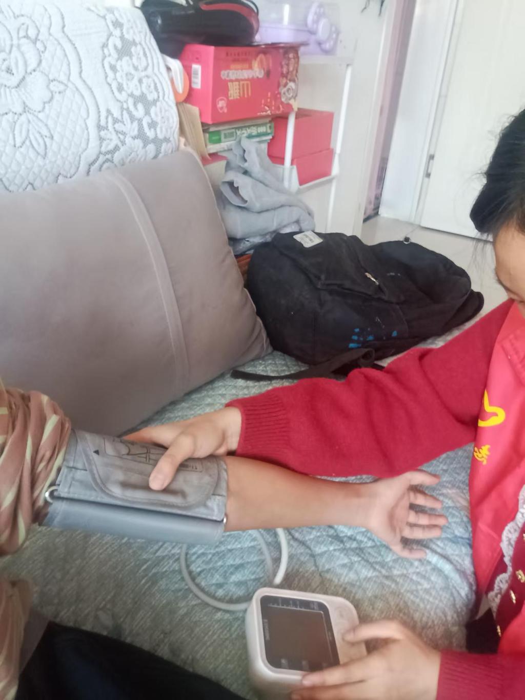 活动当天,我们早早集合,带好所准备的各种医疗设备,跟随卫生室的医疗工作者迅速投入工作。亲身进入患者家中,我们协助医护人员为村民测量血压、血糖,耐心询问病史,记录数据。对于部分听力、视力不佳的老人,我们会凑近交流,确保信息准确传达。遇到不理解检查流程的村民,也会微笑着反复解释,直到村民安心配合。