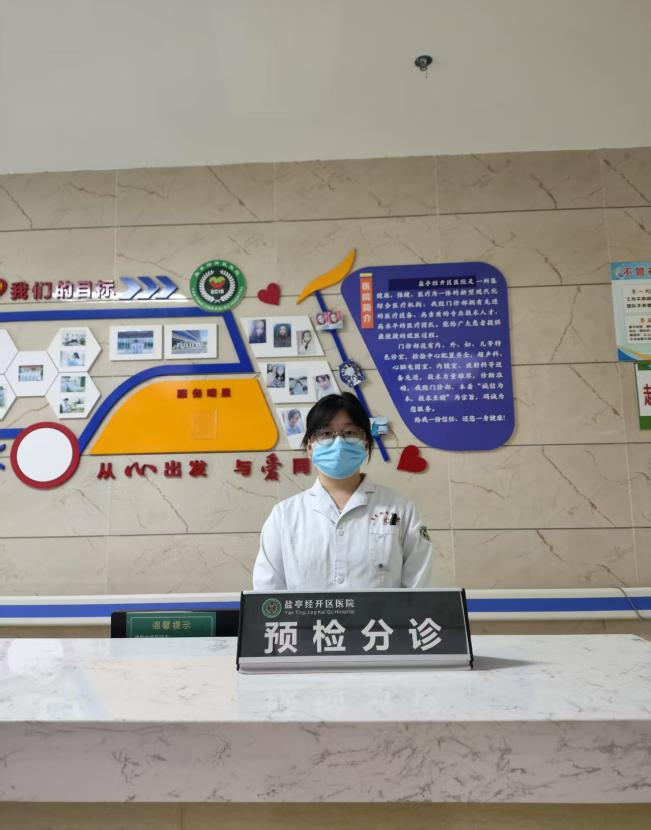 在量血压的环节中,王泓入耐心地为每一位病人测量血压,记录数据,护士姐姐关心地询问了他们的身体状况,给予了基本的健康建议。在导引台,她负责接待前来就诊的病人及其家属,引导他们到相应的科室,耐心解答疑问,提供方向指引。