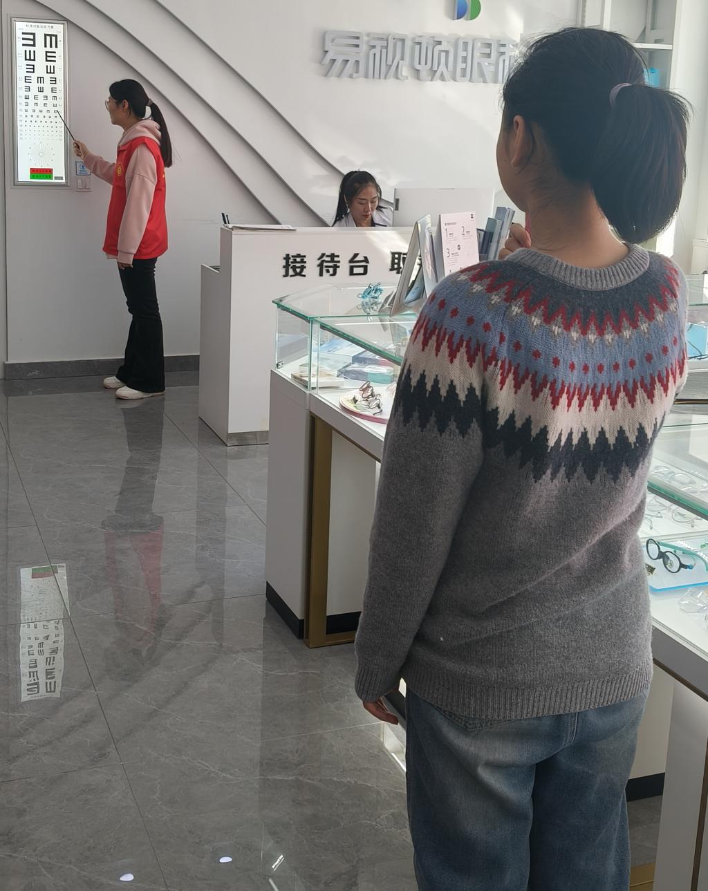 在视力检测区域,专业医护人员认真操作着精密的检测仪器,仔细为每一位小朋友检查视力。我则在旁协助,帮忙记录数据,引导小朋友们配合完成各项检测步骤,如指示孩子们正确识别视力表上的符号。