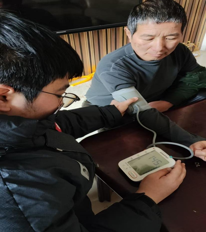 从测量到记录,程童岩始终保持着一测一叮嘱,给老人们介绍,高血压的危害平常应该怎么做。吃少盐少油的食物,戒烟戒酒控制体重,配合一些适量的运动。