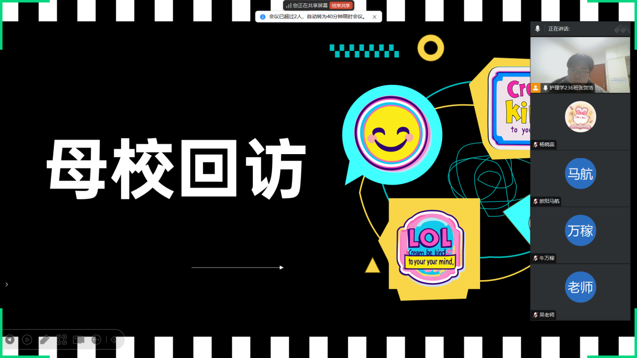 活动开始,我怀着崇敬与期待,邀请高中时期的各科任课老师加入线上会议。当老师们熟悉的面容出现在屏幕上,那些高中岁月里的课堂趣事、老师的悉心教导,瞬间在脑海中浮现。老师们关切地询问我们在大学的学习和生活情况,他们温暖的话语,让远在异地的我们感受到了如往昔般的关怀。