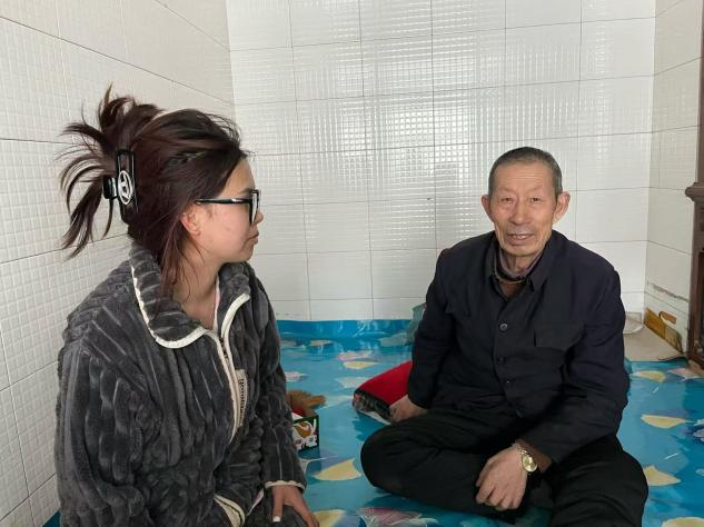 两人席地而坐,张杰亲切地陪李大爷唠家常,询问他的身体状况和生活需求。李大爷脸上洋溢着笑容,分享着过去的故事。张杰耐心倾听,还不时为李大爷出主意解决生活小难题。