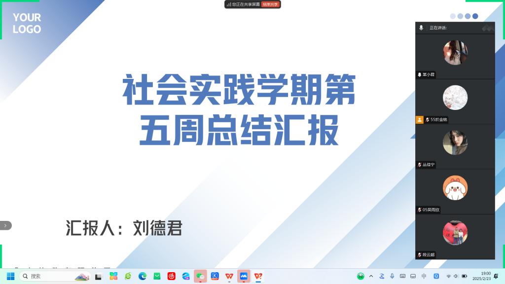 2025年2月23日,通过腾讯会议平台,袁凤娟教师主持并成功举行了小组社会实践第五周总结会议。此次会议旨在全面回顾第五周的学习与实践进展,进一步强化师生互动,提升团队合作效能,确保社会实践学期各项目标的顺利实现。