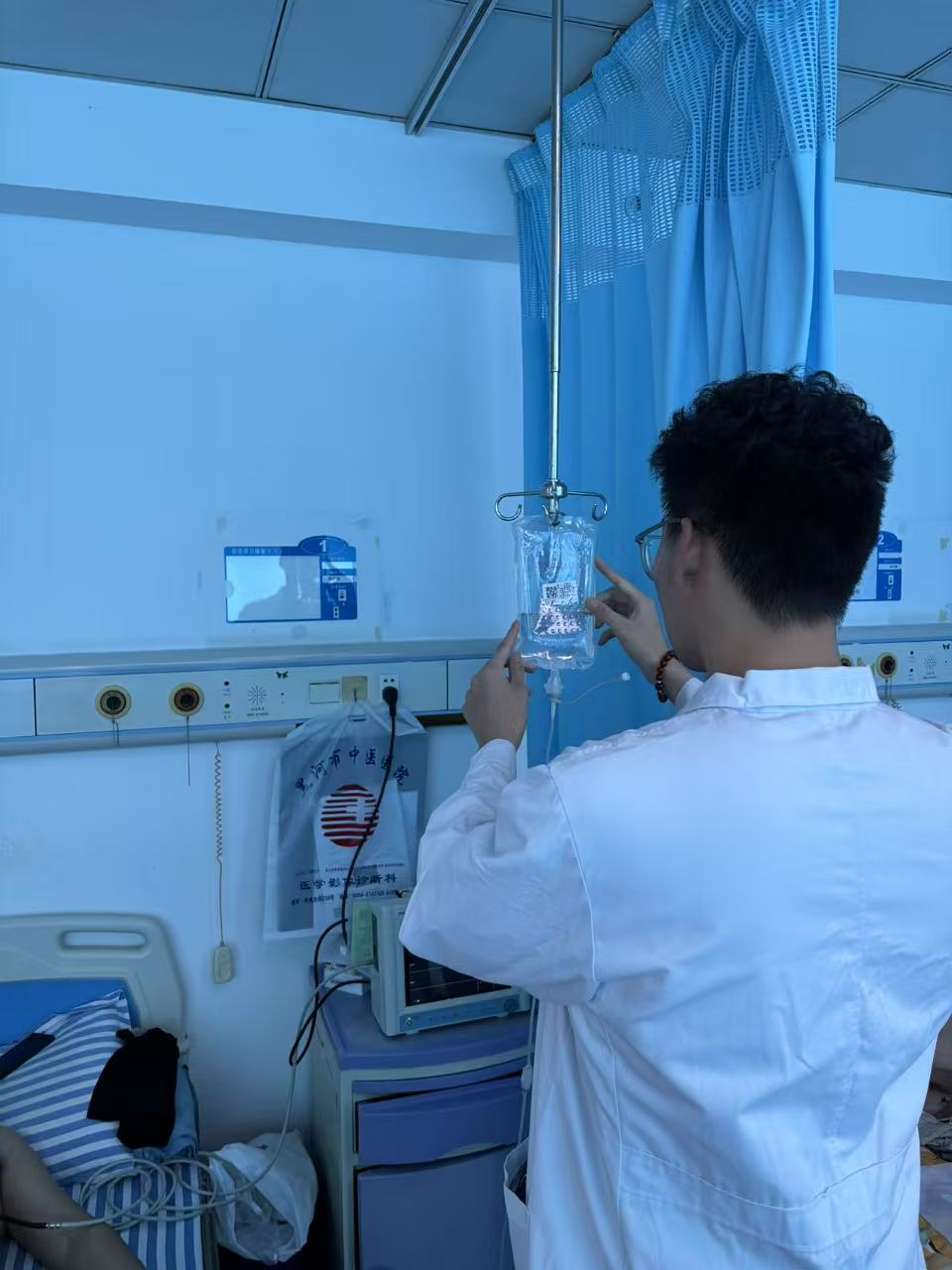 病房区里,贺博同样忙碌。他协助护士配送药品,推着装满药品的小车,脚步轻快又谨慎,按照医嘱准确无误地将药品送到各个病房。看到有患者独自闷坐,心情低落,他便停下脚步,陪患者聊天,分享一些轻松有趣的小故事,或是谈谈窗外的好天气,为沉闷的病房带来欢声笑语,帮助患者驱散心头的阴霾。