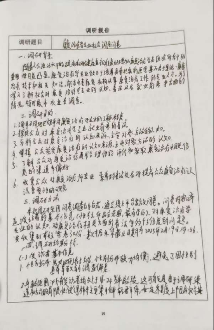 本次调查为康复治疗学发展提供方向,利于后续针对性优化与推广 。本次调研指导了我学习。
