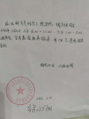 2月20日,我满心期待地来到了黑龙江省双鸭山市宝清县安吉家园康养敬老院参加志愿服务。一走进养老院,院子里的老人们状态不一,有的正三三两两地闲聊,有的独自静静坐着,眼神里透着些许孤单。我心里一紧,暗下决心要好好陪陪他们。