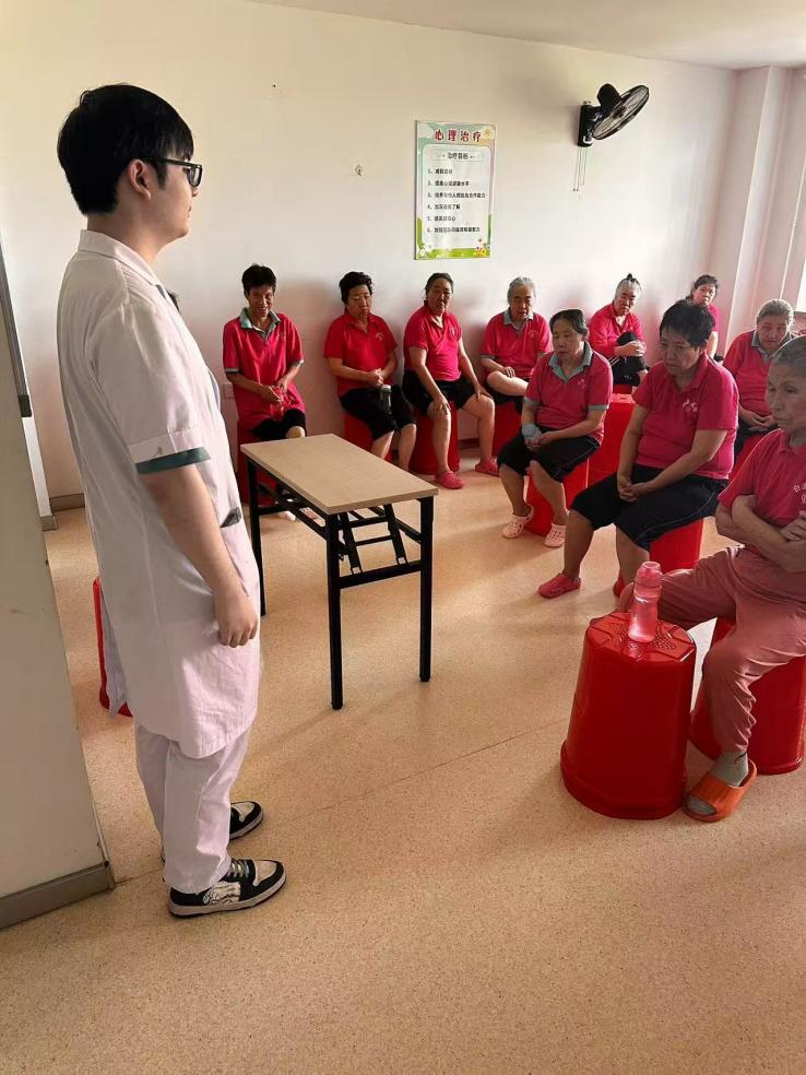 到达养老院后,朱虹宇首先为老人们进行了健康知识的宣讲,并对个别老人进行了血压测量,他告诉老人们应该如何应对老年疾病,交谈过程中朱虹宇得知王爷爷曾是一位老师,他跟朱虹宇聊起了自己的教育生涯,言语中满是对学生的关爱与怀念。朱虹宇专注地倾听,不时回应,看着王爷爷脸上洋溢的笑容,他真切地感受到陪伴的力量。