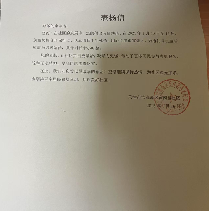 李嘉睿同学则将温暖送到了社区孤寡老人的家中。她带着精心准备的生活用品和食品,走进老人们的生活。李嘉睿陪老人们聊天,听他们讲述过去的故事,帮助老人打扫房间、整理家务。在交流中,他发现老人们内心渴望陪伴,于是更加用心地倾听与回应,让老人们感受到久违的关怀。