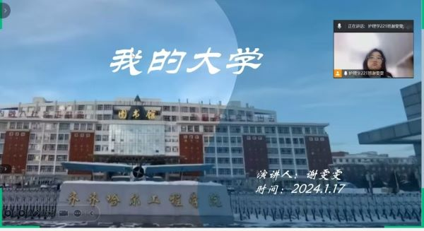 活动开始,我先分享了自己毕业后的学习和生活经历。讲述在大学遇到的挑战,如何努力克服,以及这些经历带给我的成长。学弟学妹们听得很认真,不时在评论区提问。分享完个人经历,便进入介绍我的大学--齐齐哈尔工程学院。