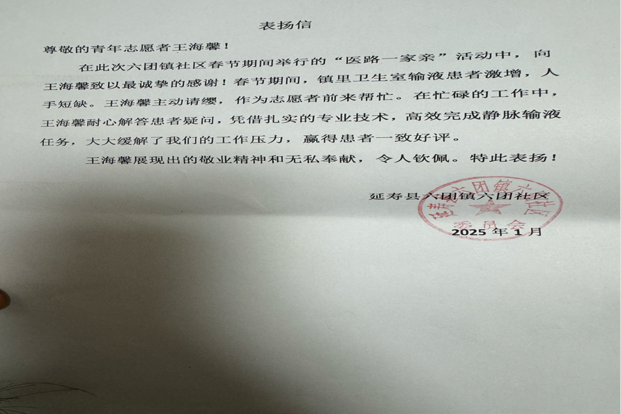 近日,我参加了六团社区护士志愿者团队,通过参加六团社区组织开展的“医路一家亲”活动 帮助镇卫生室进行静脉输液以及后勤保障工作,作为护士志愿者的一员,我有幸参与其中,在人手紧张之际,帮助卫生室开展静脉输液工作,用行动传递温暖。