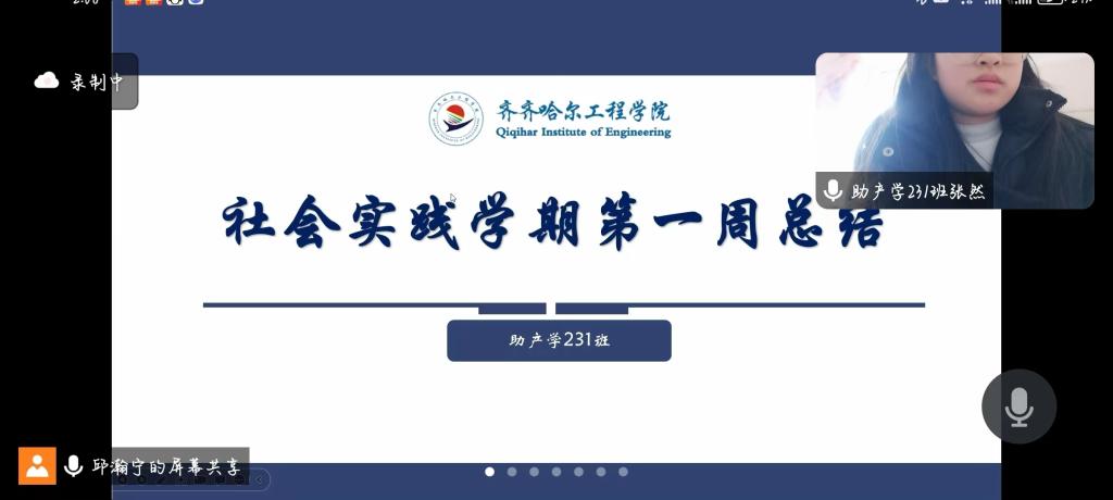 会议伊始,辅导员邱瀚宁老师让全体同学打开摄像头,随机抽取12名同学汇报社会实践完成的进度,并在同学们汇报过程中和同学们确认读书交流感悟是否是自己完成,以及对同学们阅读的书名进行了提问,同时助产学231班全体同学的生涯导师作为监督,看同学们是否有谎报作业数量的情况。