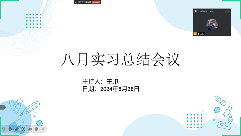 近日,王印老师通过腾讯会议平台成功召开了九月份实习总结会议。本次会议的主要参与者包括王印老师及其所带领的实习学生。会议内容丰富,涵盖了安全提醒、职业暴露预防、学生实习分享及问题解答等多个方面。