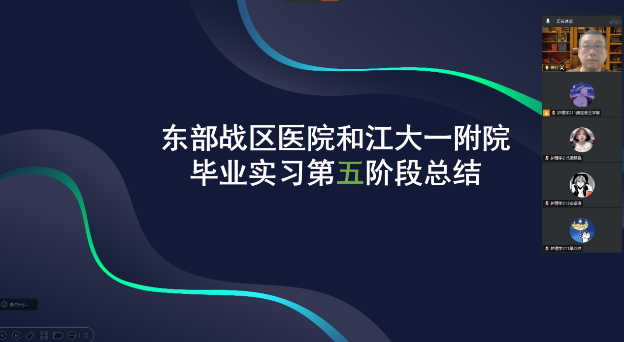 首先,姜佳老师表达了对学生的关怀,询问大家实习的情况。在个案方面,要多加关注临床典型案例,可以进行多加收集,以便日后写护理个案方便开展。在实习注意事项方面,姜佳老师强调一是操作流程必须严谨,比如换药时要严格遵循无菌原则以及在进行操作时要在带教老师带领情况下进行。二是沟通要到位,无论是和带教老师、医生还是患者及其家属。面对患者的疑问要耐心解答。