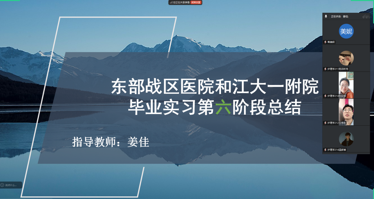 2024年12月24日,为了解毕业实习情况,护理学专业毕业实习(姜佳组)召开线上会议,会议由姜佳老师主持,两所医院毕业实习学生参加。
