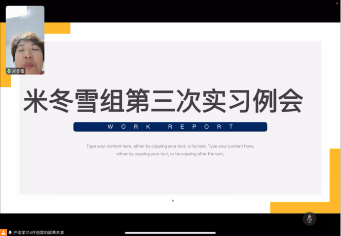 接着米冬雪又再次进行了学期任务的强调,实习安全的重要性,列举护理实习中常见的安全风险事件,如针刺伤、感染传播、患者跌倒等,并分析其原因和预防措施。争取多学到点知识,更加扎实自己的技能操作。