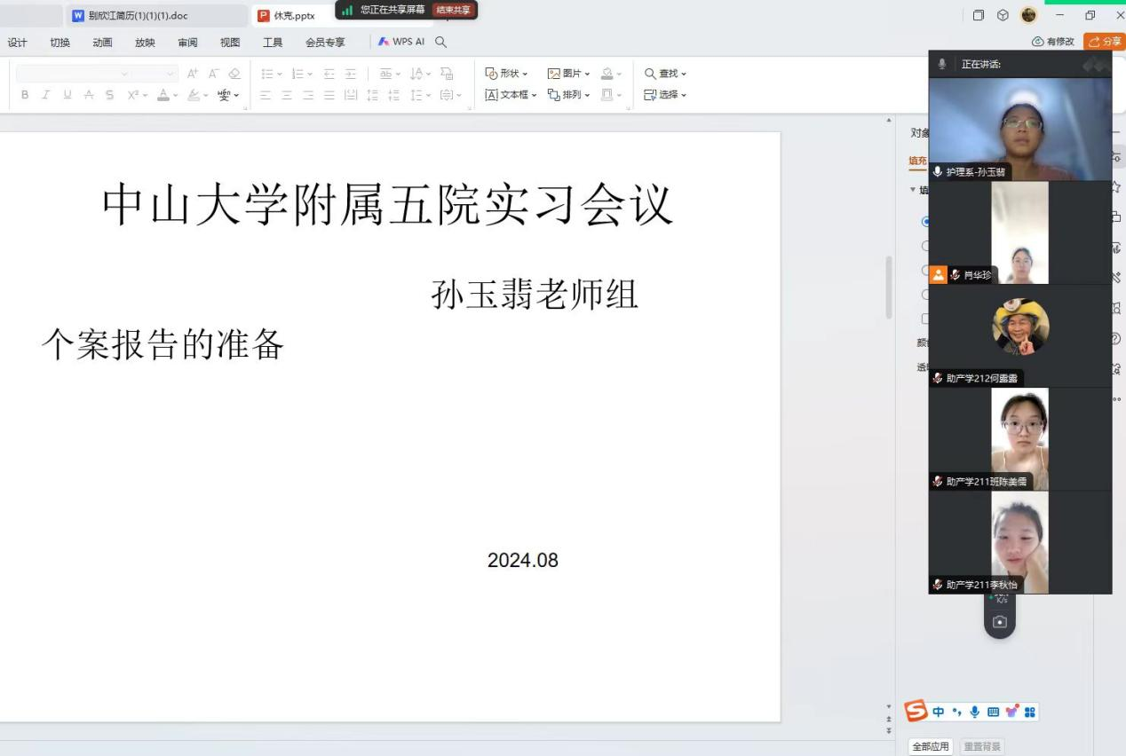 2024年8月17日,孙玉翡老师为中山大学附属第五医院实习的同学们组织了一次专题会议。本次会议的核心议题是强调个案报告的准备与撰写的重要性。孙玉翡老师首先指出,个案报告不仅是实习期间的重要任务,更是展示实习生临床思维能力、观察力和分析能力的重要手段。她强调,每一位实习生都应认真对待个案报告的撰写,确保内容详实、逻辑清晰、分析深入。