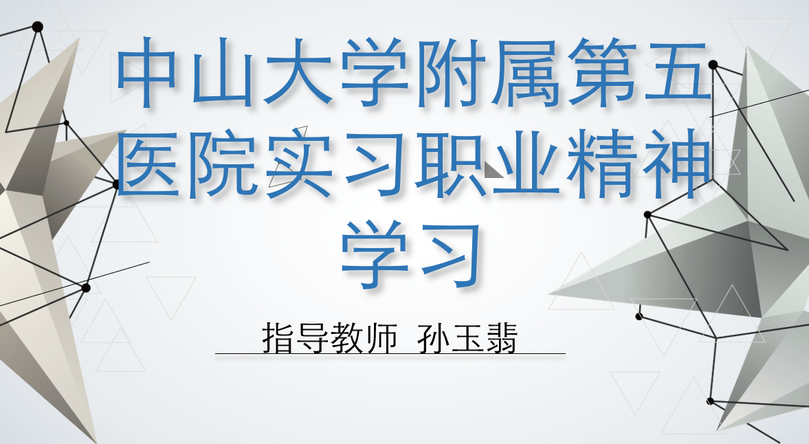 孙玉翡老师为中山大学附属第五医院实习的同学们开展了职业精神引导的会议,护士职业精神,作为护理工作的灵魂所在,涵盖了患者关怀、职业热爱、责任担当以及团队协作等诸多重要方面,是提升护理服务品质、增强患者就医体验的关键要素。