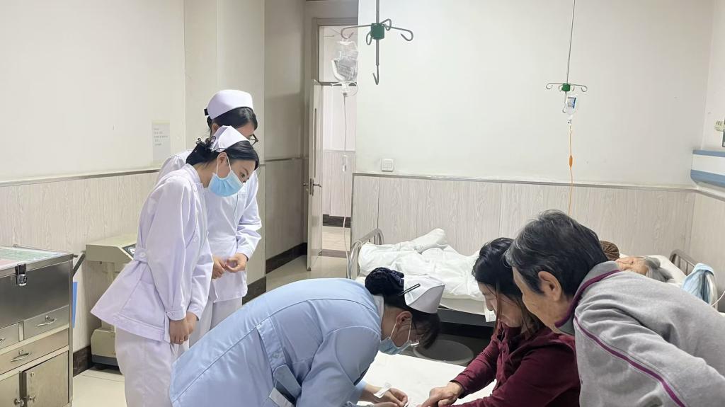进入临床教学环节,于慧为护士长带领同学们来到模拟病房,以内分泌科真实的糖尿病酮症酸中毒合并休克患者为例,开展现场教学。于慧为护士长持监护仪数据,演示如何通过血压骤降、皮肤湿冷等体征快速锁定休克早期表现,并模拟患者意识障碍突发场景,指导同学们完成气道管理、静脉通路建立等应急操作。针对内分泌科患者血糖波动的特殊性,于慧为护士长着重讲解了胰岛素泵入与抗休克治疗协同护理的要点,将临床经验与课堂知识深度融合。
