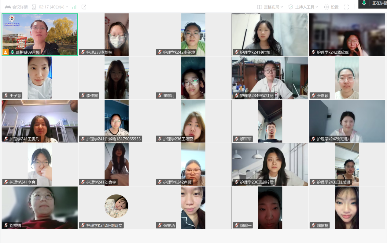 为复盘护理实习首周工作,明晰实践成果与方向,2025年6月20日,尹娜老师组织护理实习学生开展线上首周总结会议。仲泰医院及天津医院护理实习学生参与,由护理学K242班张思彤担任主持汇报,通过实习汇报、老师点评、写作培训等环节,为实习工作锚定新航标。